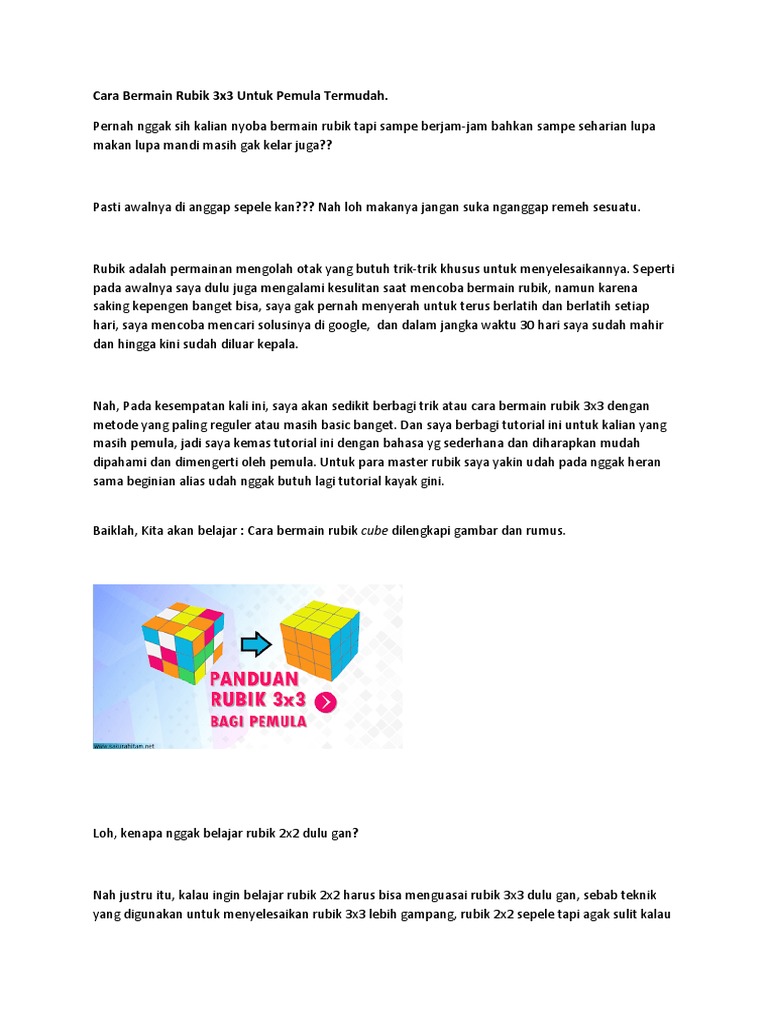 Cara Bermain Rubik 3x3 Untuk Pemula Termudah Docx