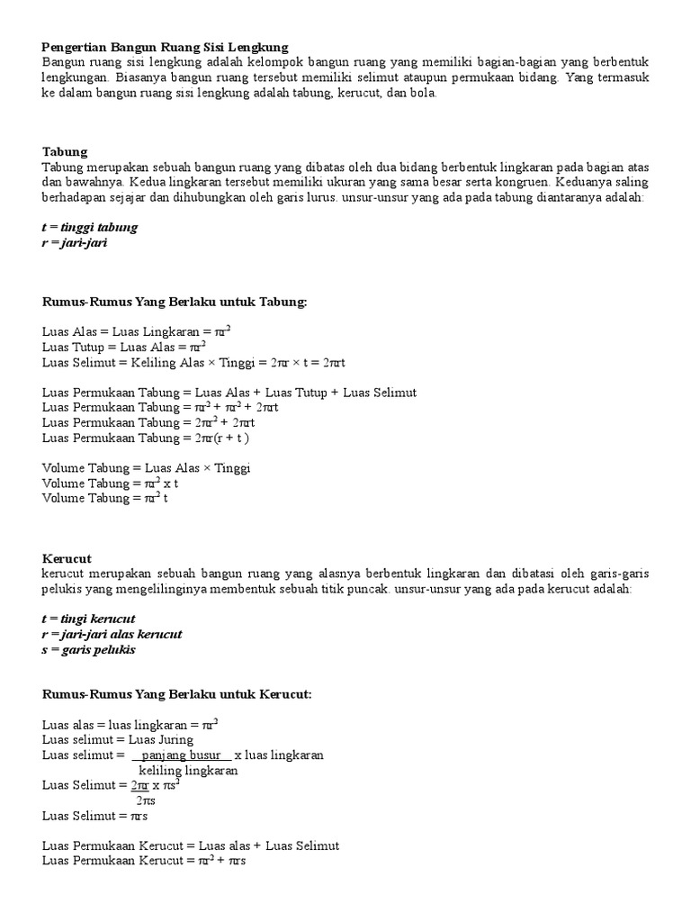 Rumus Bangun Ruang Sisi Lengkung Beserta Contoh Soal Materi Untuk Belajar