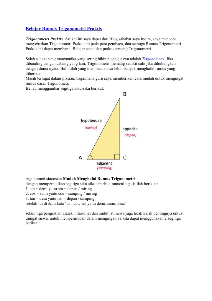 Menghitung Tinggi Pohon Menggunakan Rumus Identitas Trigonometri