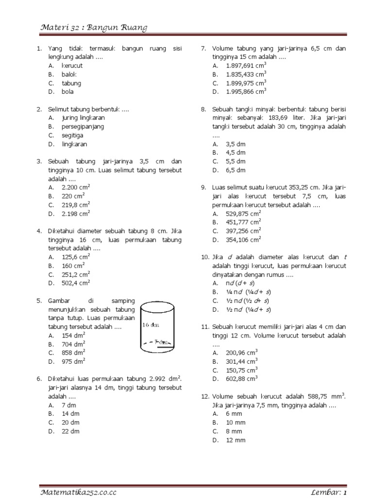 Rumus Tabung Pengertian Luas Volume Keliling Dan Contoh Soalnya Lengkap Tutorialbahasainggris Co Id