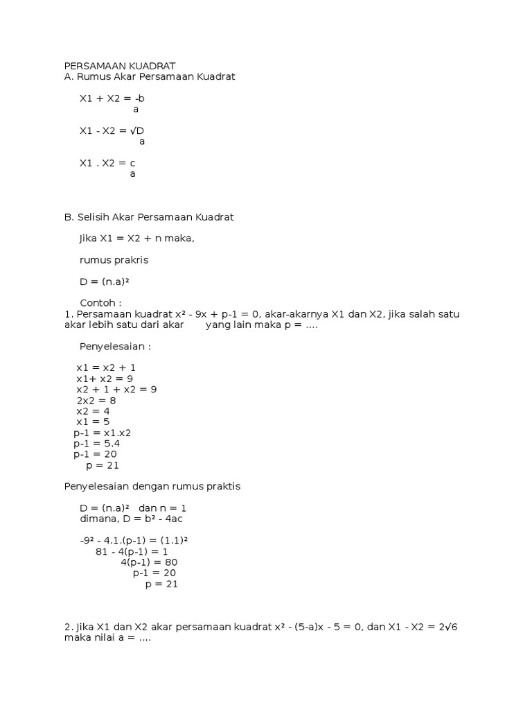 Rumus Jumlah Dan Hasil Akar Akar Persamaan Kuadratdiketahui Akar Akar Persamaan Kuadrat 2x X 4 0 Brainly Co Id