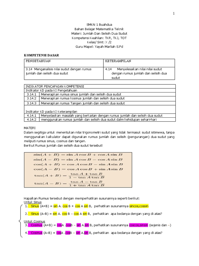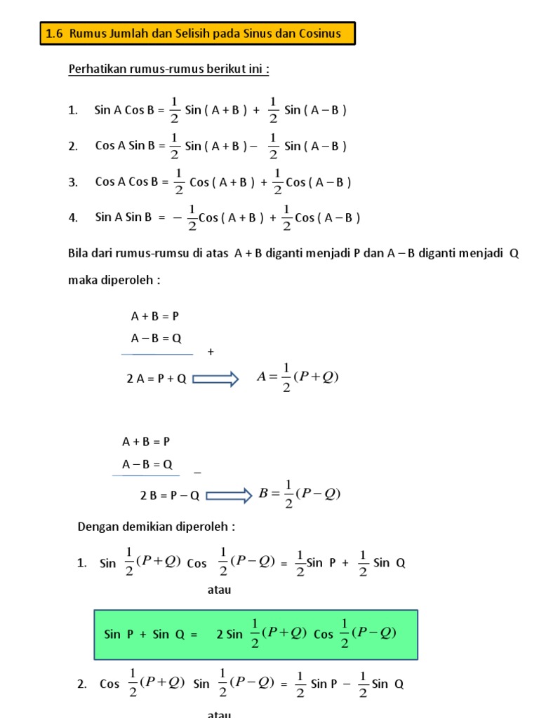 Rumus Dasar Matematika Rumus Jumlah Dan Selisih Dua Sudut Trigonometri