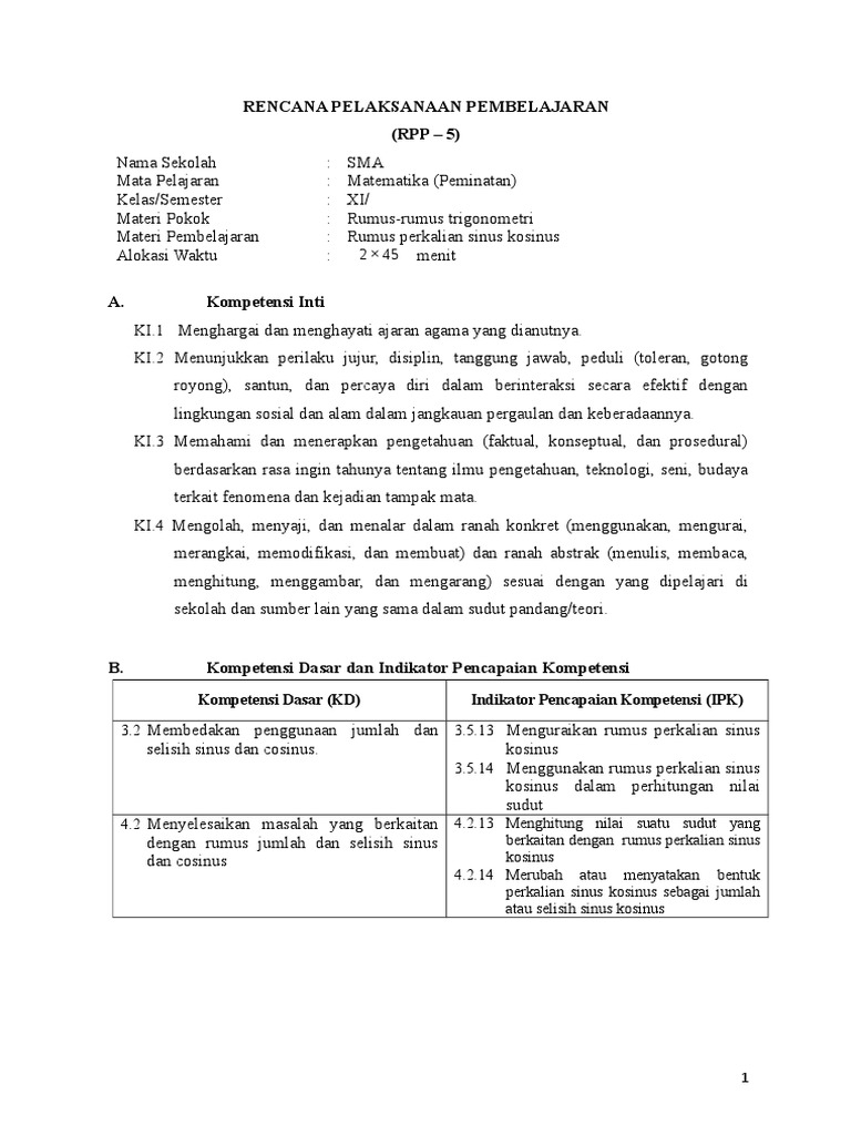 Rumus Cosinus Jumlah Dan Selisih Dua Sudut Matematika Sma Smk Detail Catatan Mejakita