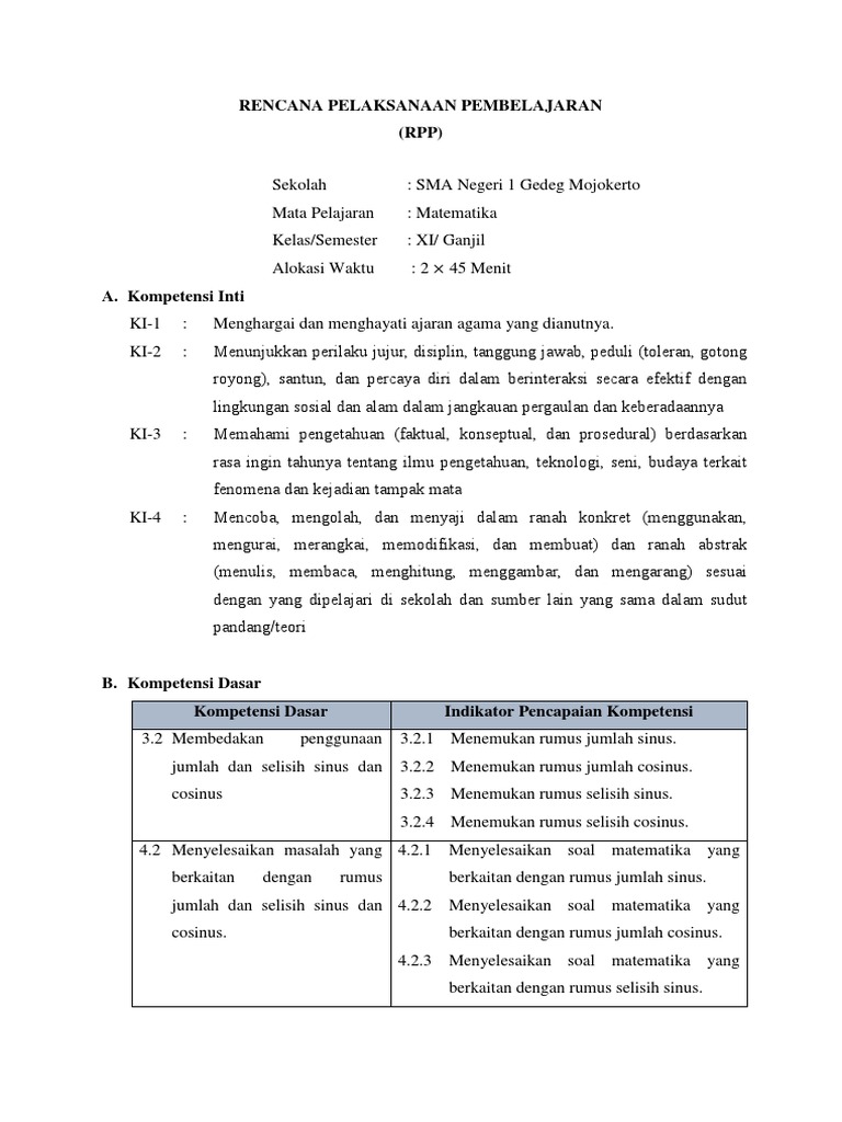 Rumus untuk cosinus jumlah selisih dua sudut. Rumus kebalikan dari rumus di atas adalah mengubah bentuk perkalian dua fungsi trigonometri sinus dan atau cosinus menjadi jumlah atau selisih fungsi trigonometri sinus dan cosinus. Tahukah kalian bahwa sinus dan cosinus memiliki aturan yang khusus dan diterapkan dalam segitiga.