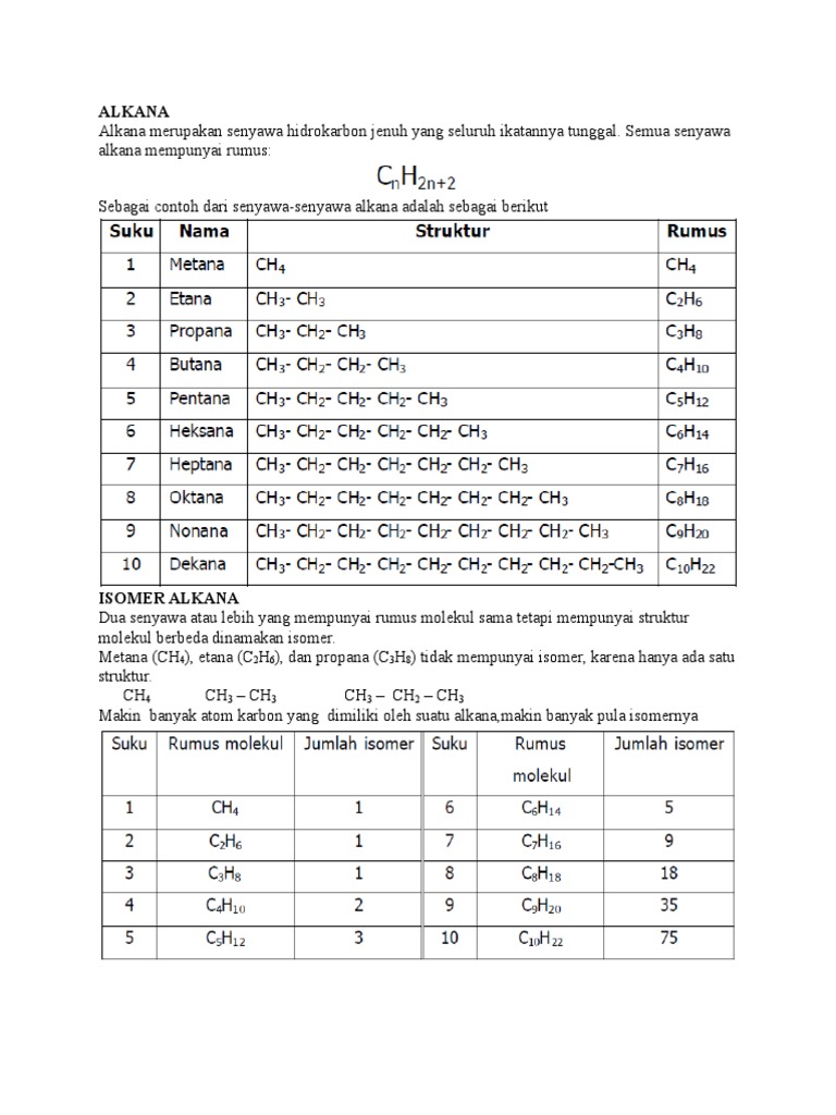 Alkana merupakan senyawa hidrokarbon alifatik jenuh yaitu hidrokarbon dengan rantai terbuka dan semua ikatan karbonnya merupakan ikatan tunggal. Tata nama senyawa hidrokarbon alifatik alkana. Alkana merupakan senyawa hidrokarbon alifatik jenuh dan memiliki rumus umum cnh2n2.
