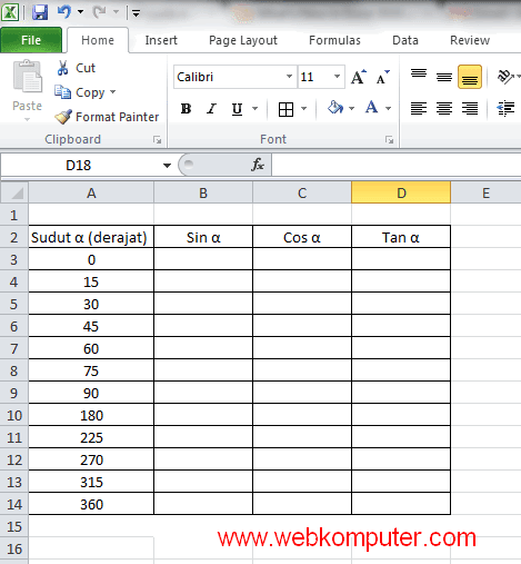 Tutorial Microsoft Office Menggunakan Fungsi Trigonometri Sin Cos Tan Pada Excel 2010