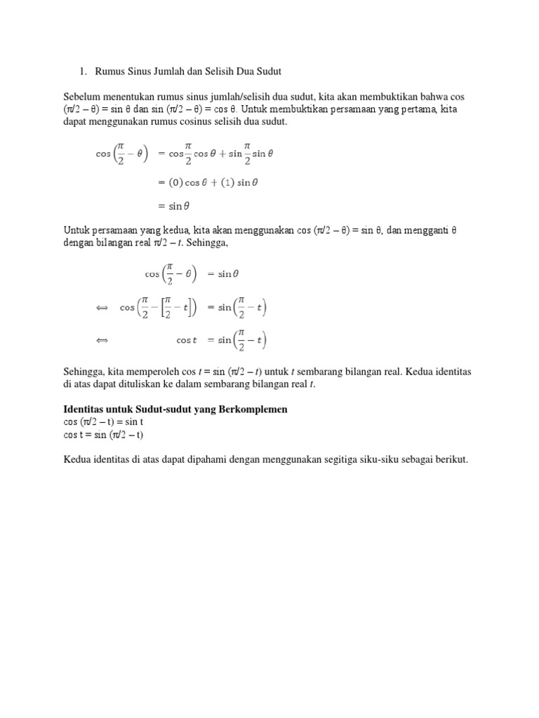 Rumus Trigonometri Serta Cara Memperolehnya Rumus Matematika