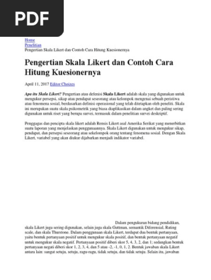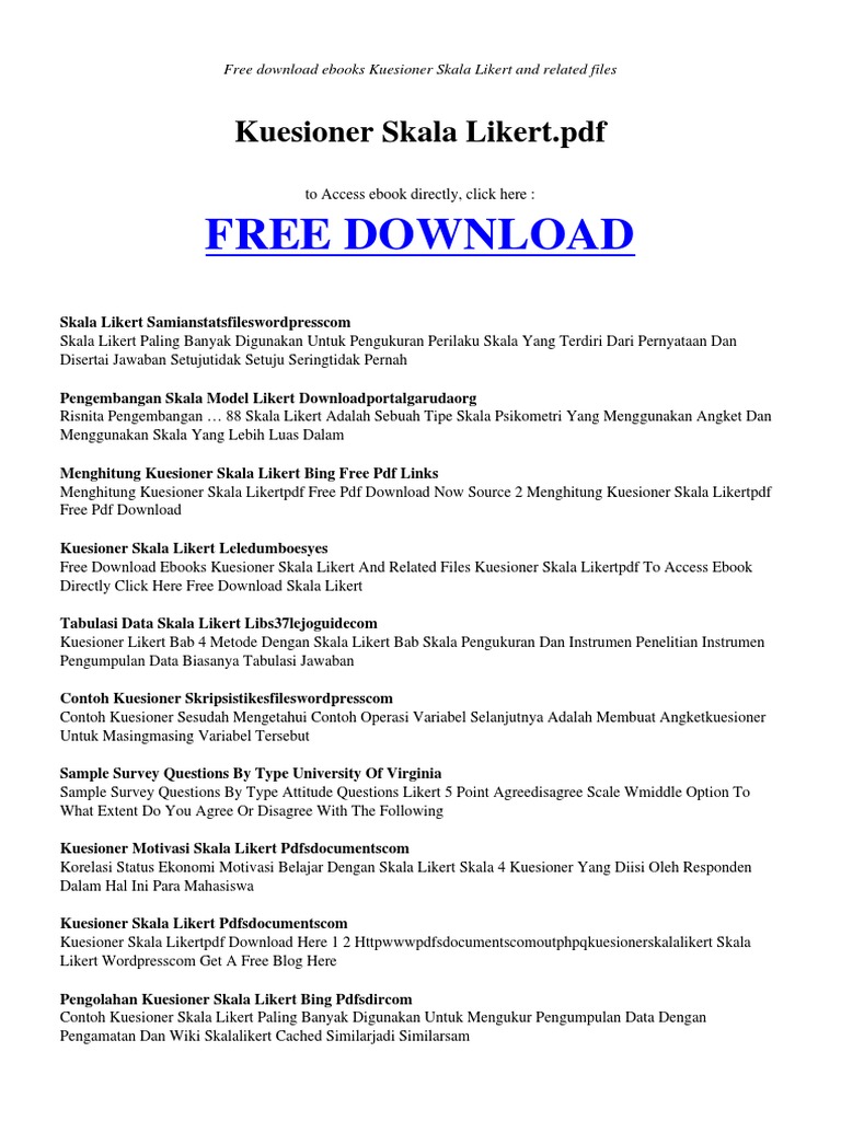 Pengolahan Data Angket Skala Likert Pengolahan Data Dari Hasil Angket Maka Penulis Menggunakan Metode Sekala Likert Nilai Tabel 3 2alternatif Jawaban Dengan Skala Likert Pdf Document