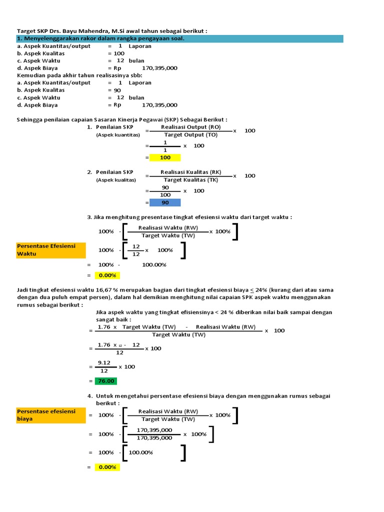 Petunjuk Teknis Pengisian Penilaian Prestasi Kerja Jabatan 6 Capaian Skp Adalah Hasil Akhir Pdf Document