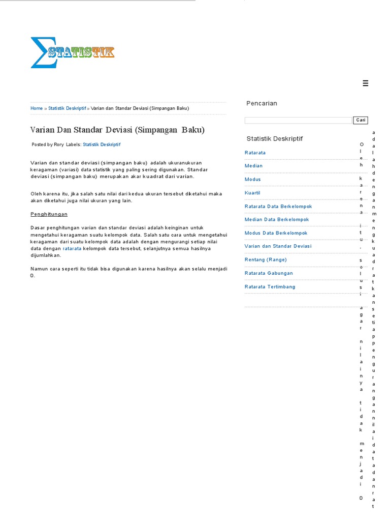 Statistika Ukuran Penyebaran Data Penjelasan Rumus Dan Contoh Soal Jangkauan Simpangan Ragam Terlengkap Ukuran Penyebaran Data Pdf Free Download