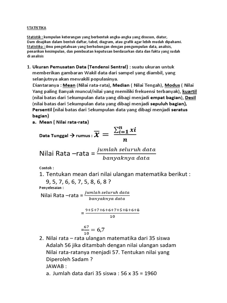 Statistika Ukuran Pemusatan Data Mean Median Modus Rumus Dan Contoh Soal Pelajaran Sekolah Online