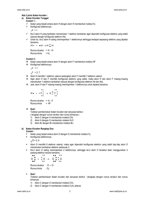 Contoh Ikatan Kovalen Rangkap 2 Dan 3 Dua Tiga Proses Pembentukan Pengertian Soal Kunci Jawaban Senyawa Unsur Kimia Atom