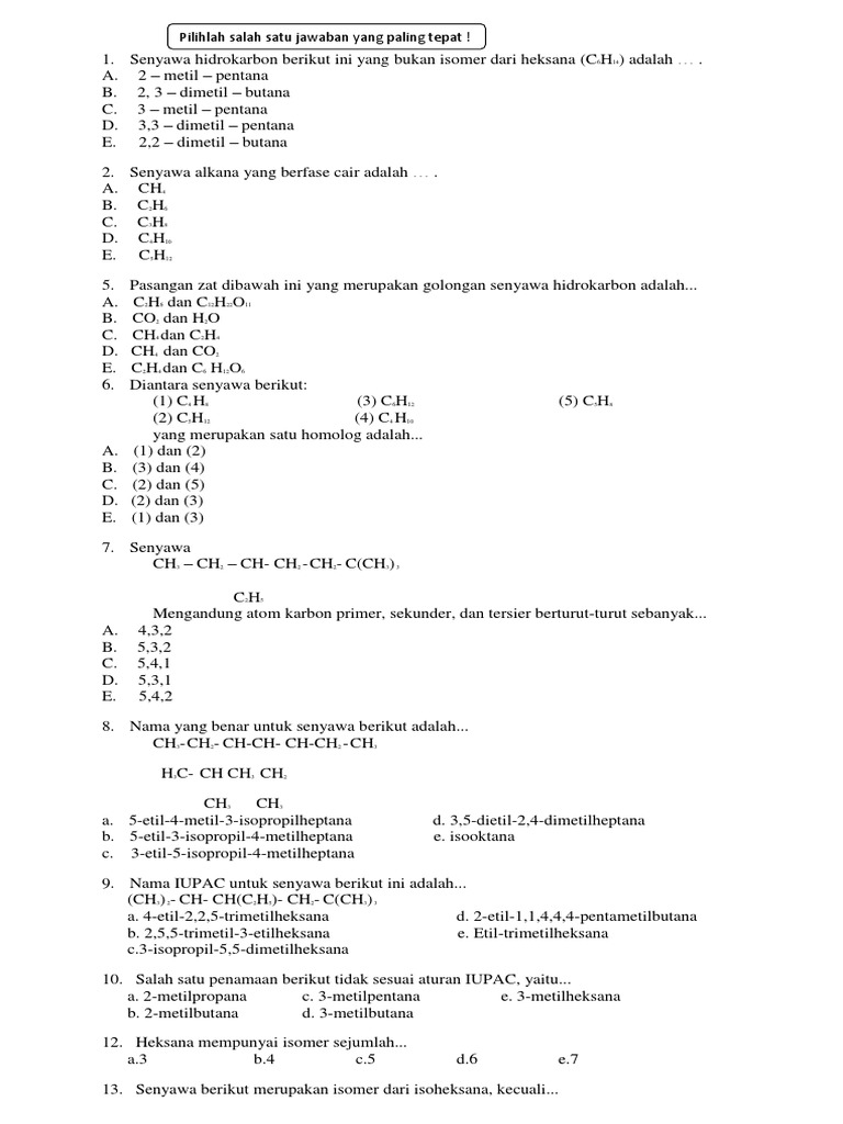 Kelas Xi Mapel Kimia Bab 1 Senyawa Hidrokarbon Subbab 2 Alkana Alkena Dan Alkuna 9 Rumus Struktur Dari Molekul 3 3 Dietil 2 Metilpentana Adalah M2 01a M2 01b M2 01c M2 01d M2 01e Soal Berikutnya