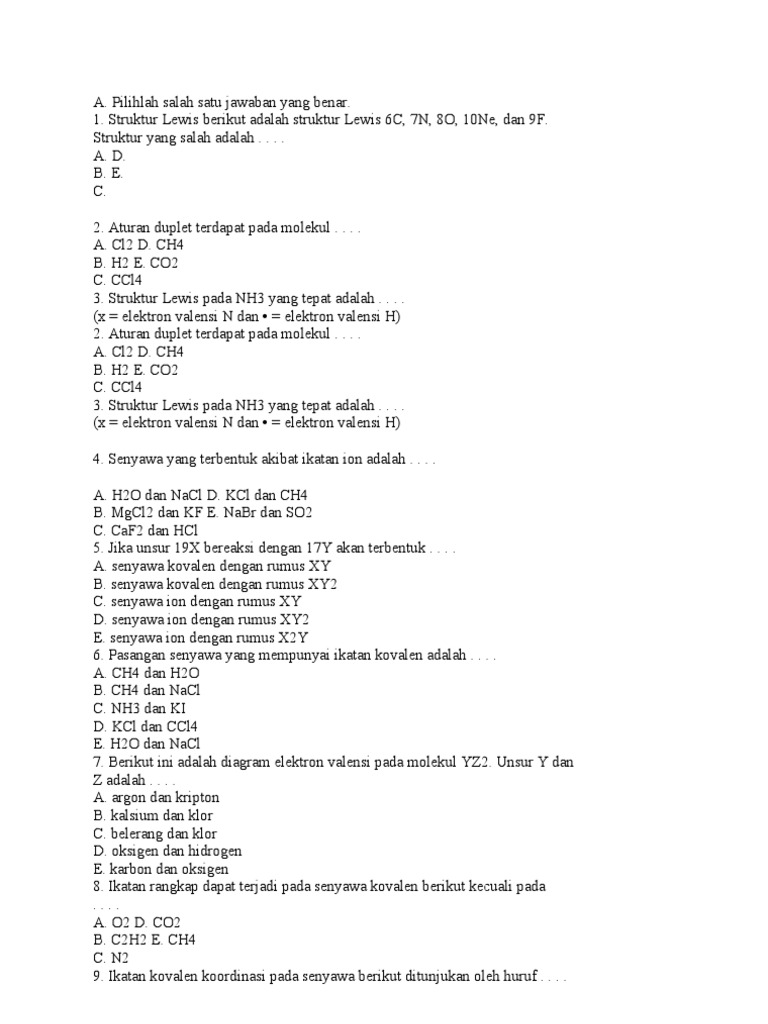 Contoh Ikatan Kovalen Rangkap 2 Dan 3 Dua Tiga Proses Pembentukan Pengertian Soal Kunci Jawaban Senyawa Unsur Kimia Atom