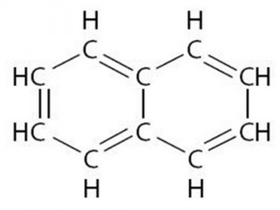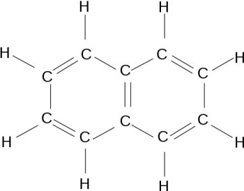 Rumus struktur naftalena. Naftalena adalah hidrokarbon kristalin aromatik berbentuk padatan berwarna putih dengan rumus molekul c10h8 dan berbentuk dua cincin benzena yang bersatu. Uap yang dihasilkan bersifat mudah terbakar. Peristiwa ini disebut resonansi ikatan rangkap.