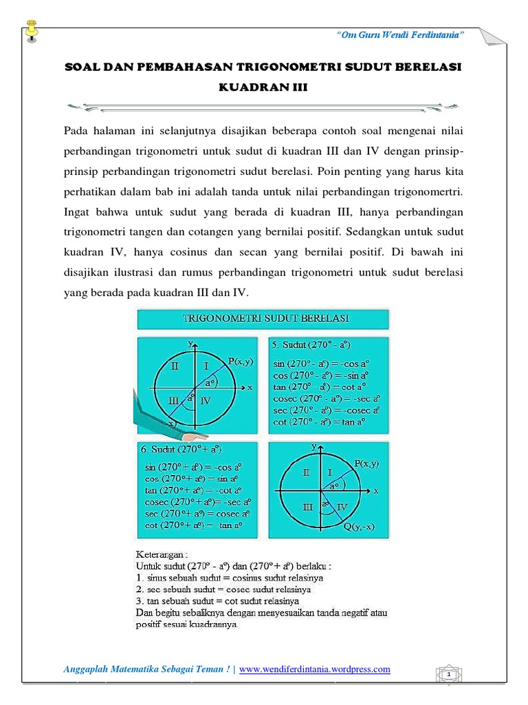 Latihan Soal Sudut Berelasi Vincencia Sari