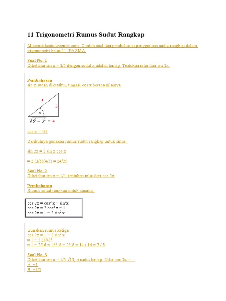 Berbagi Sharing Rumus Sudut Ganda Atau Rangkap Part 2 Trigonometri