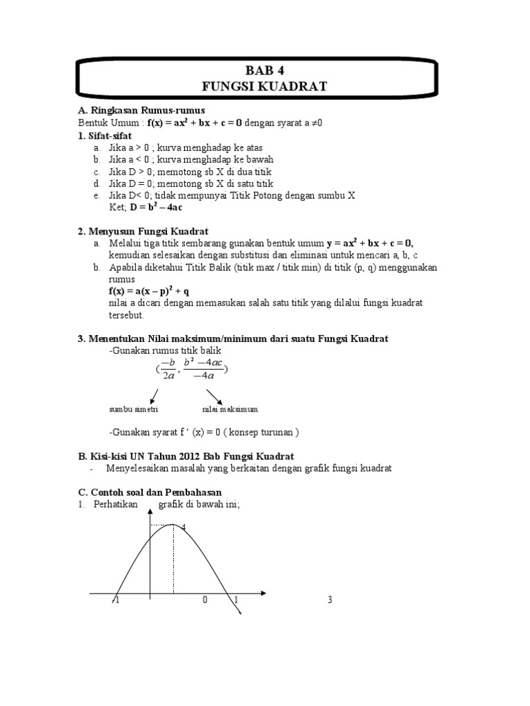 Imath Cara Menentukan Sumbu Simetri Dan Titik Puncak Dari Grafik Fungsi Kuadrat Parabola