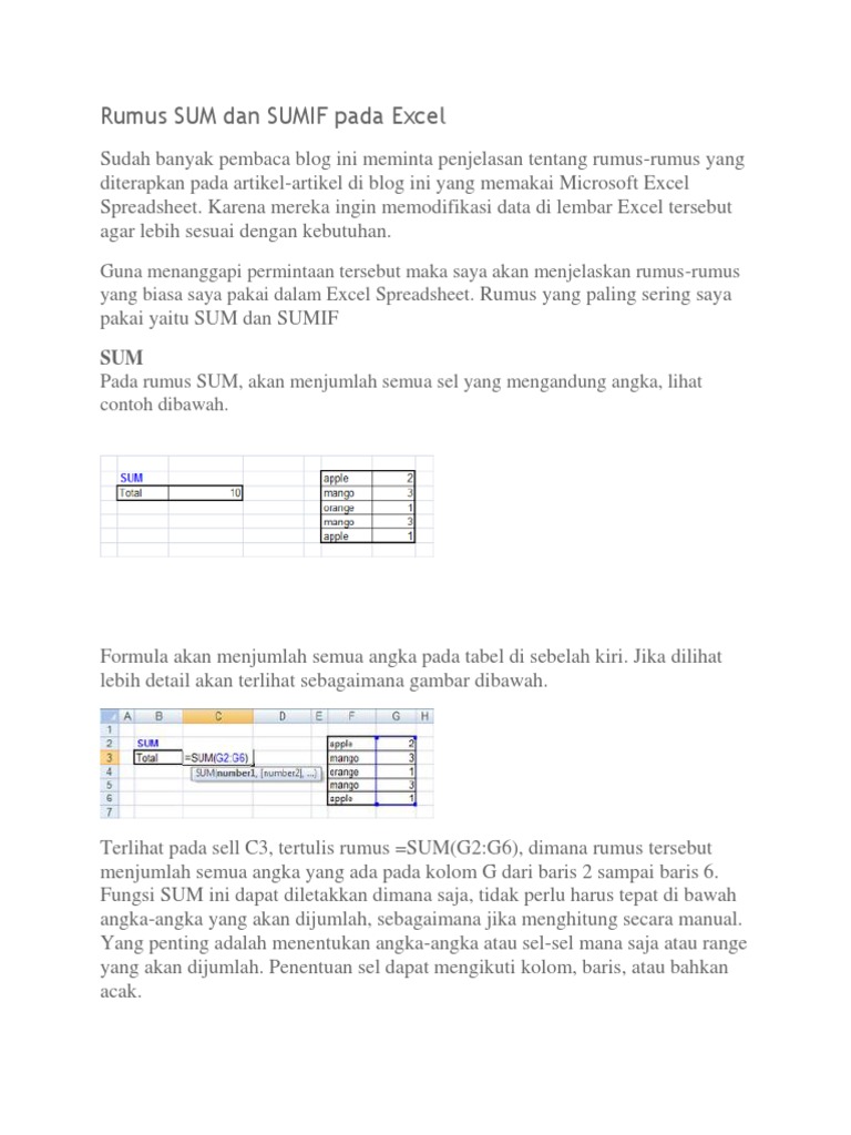 Fungsi Sumif Pada Excel Kursus Komputer Kursus Bahasa Inggris Bimbel Les Baca Hitung Jl Solo Yogya Km 30 Jombor Ceper Klaten Telp 0858 7778 5500