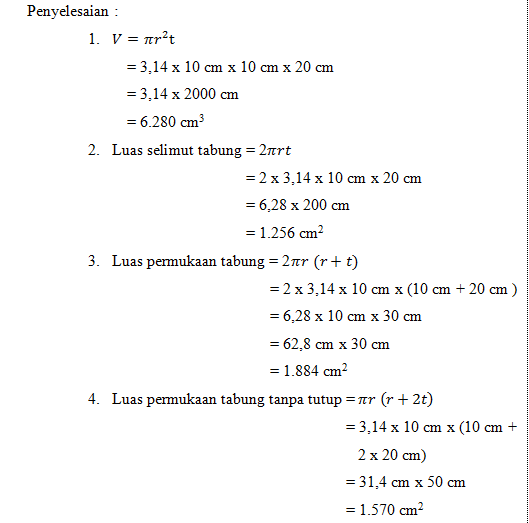 Sebuah Tabung Tanpa Tutup Mempunyai Ukuran Jari Jari 10 Cm Dan Tinggi 20 Cm Luas Permukaan Tabung Brainly Co Id