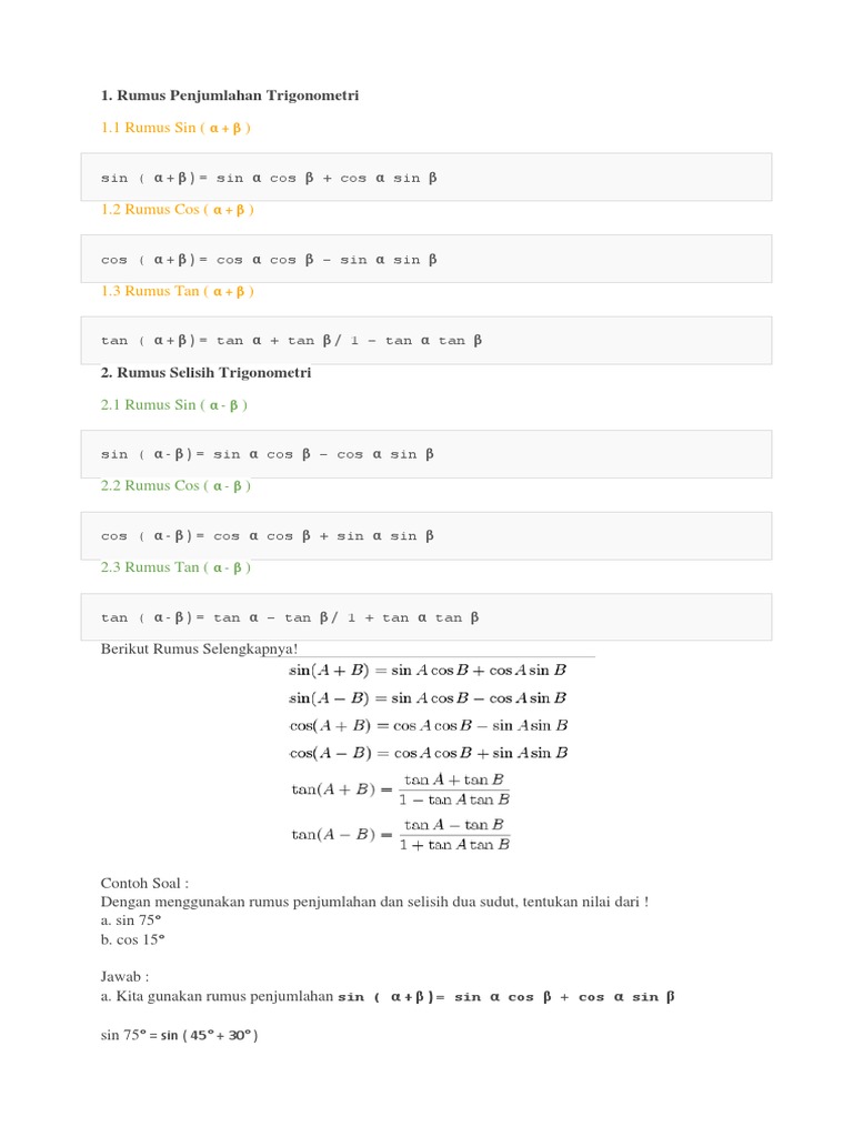Rumus Contoh Soal Trigonometri Sma Matematika Sin Cos Tan A B Sudut Ganda Jumlah Dan Selisih Cara Menentukan Dan Menghitung