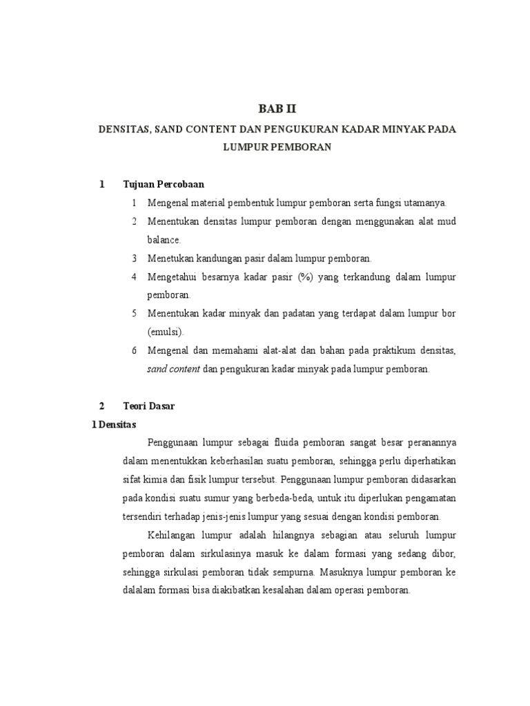Si Petro Experiment Pengukuran Densitas Dan Sand Content Pada Lumpur Pemboran