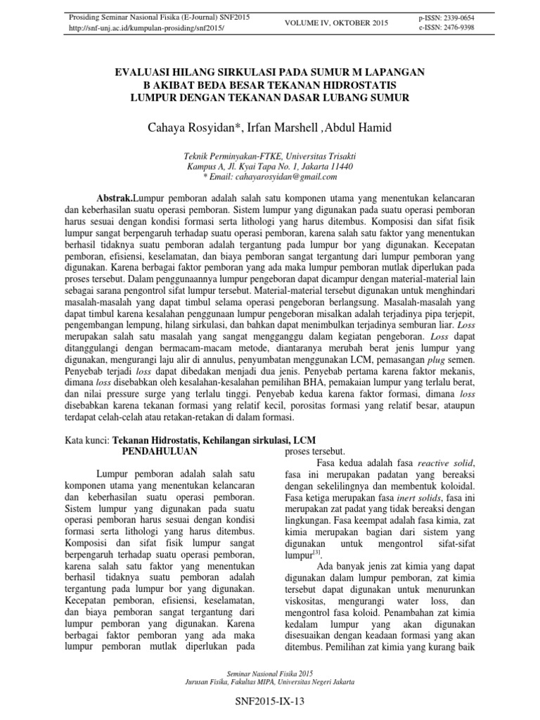 Analisis Parameter Fisika Terhadap Pengendalian Tekanan Lumpur Pengeboran Studi Kasus Prevensi Kick Dan Blowout Pdf Download Gratis
