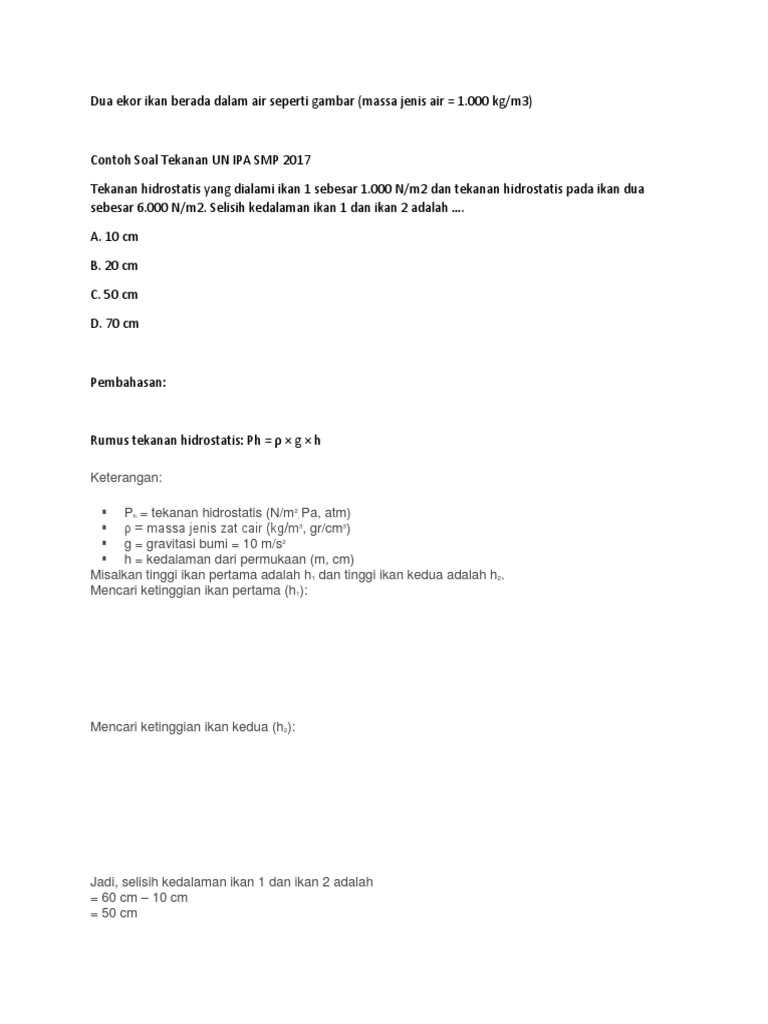 Contoh Soal Tekanan Hidrostatis Dan Pembahasan Pada Berbagai Kasus Gammafis Blog