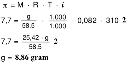 Konsentrasi Larutan Nacl Yang Mempunyai Tekanan Osmosis 2 46 Atm Pada 300 K Dan R 0 082 L Atm Kmol Brainly Co Id