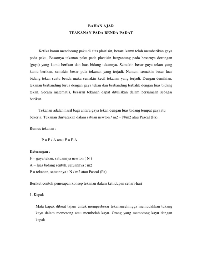 Berlakukah Tekanan Pada Semua Wujud Zat Jelaskan Dan Definisikan Rumusnya Pada Masing Masing Wujud Brainly Co Id