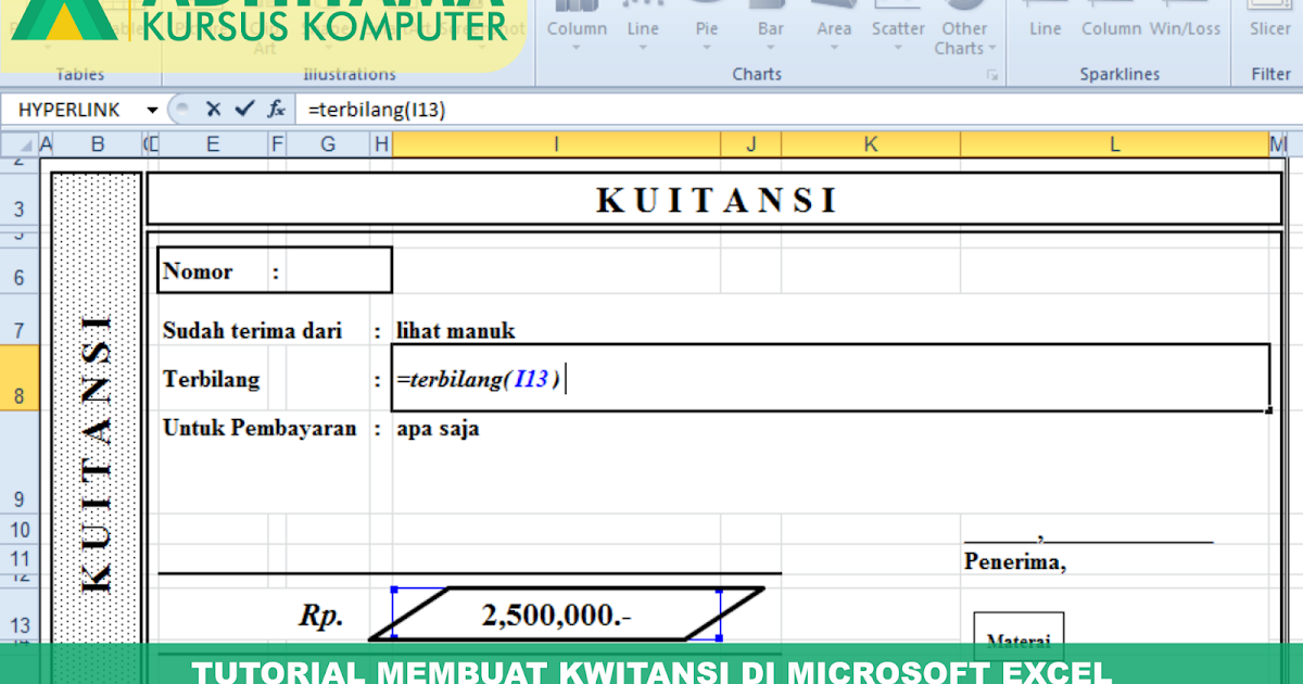 Tutorial Membuat Kwitansi Di Microsoft Excel Rumus Terbilang Kursus Komputer Bersertifikat Di Ciamis Kursus Komputer Ciamis Adhitama Privat Komputer Ciamis