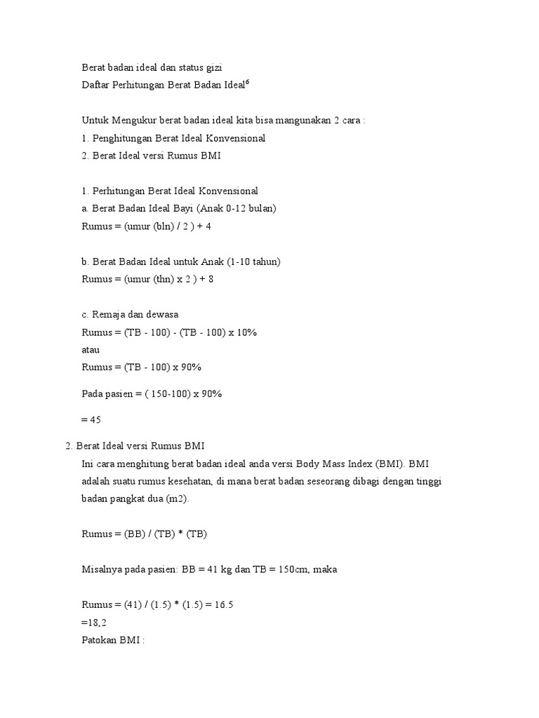Berat badan ideal anak 2n 8 n usia anak dalam satuan tahun. Rumus imt orang dewasa. Setelah memasukkan nilai berat dan tingginya didapatkan indeks massa tubuh orang tersebut sebesar 246.