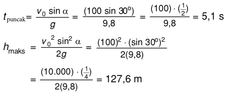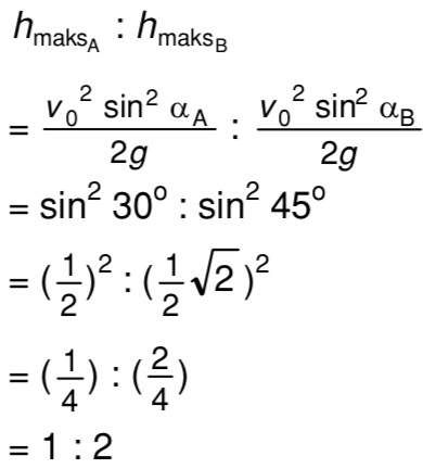 Dua Peluru Ditembakkan Dengan Kecepatan Sama Tapi Dengan Sudut 30 Derajat Dan 45 Derajat Perbandingan Ketinggian Maksimum Keduanya Soal Fisika