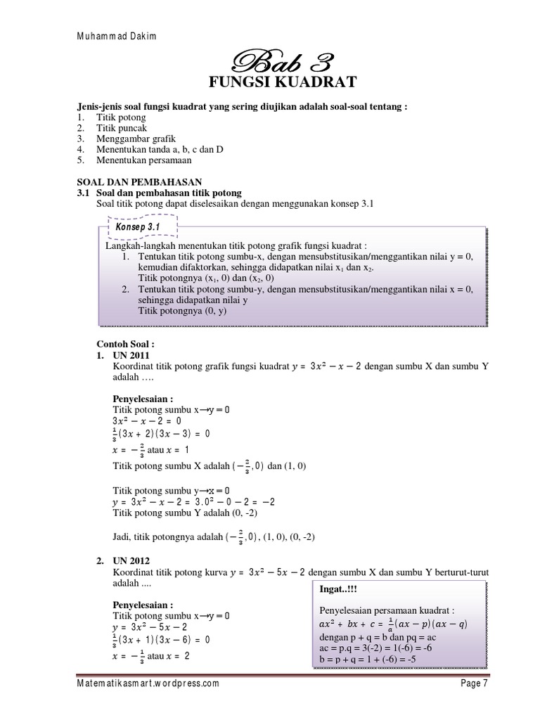 Tutorial Cara Menentukan Titik Potong Grafik Fungsi Kuadrat Terhadap Sumbu X Dan Sumbu Y Bagian 3 Youtube