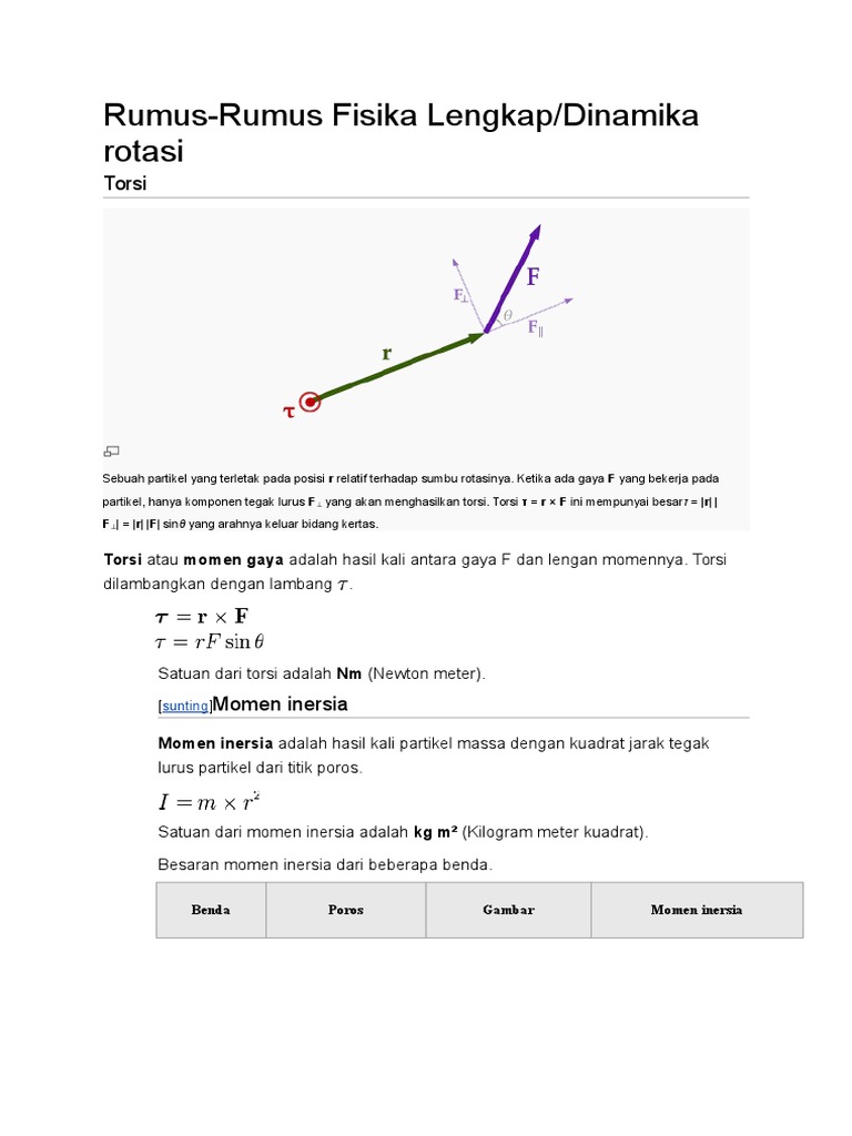 Rumus torsi fisika. Loncat ke navigasi loncat ke pencarian. Subbagian ini akan membahas tentang torsi momen inersia dan berbagai kasus kasusnya. 21 hubungan antara torsi dengan momen inersia.