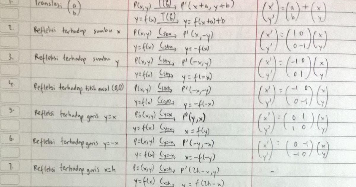 Jika sobat hitung duduk di klas 12 sma akan ada materi matematika yang disebut dengan transformasi geometri. Di materi ini sobat akan belajar menggerakkan atau mengubah transform terhadap sebuah benda atau titik pada bidang cartesius secara matematis. Kali ini rumus matematika akan membahas materi mengenai transformasi geometrimungkin teman teman telah tahu tentang transformasi geometri untuk lebih memahami mengenai materi ini berikut ini akan dijelaskan secara terperinci hal hal mengenai transformasi geometri.