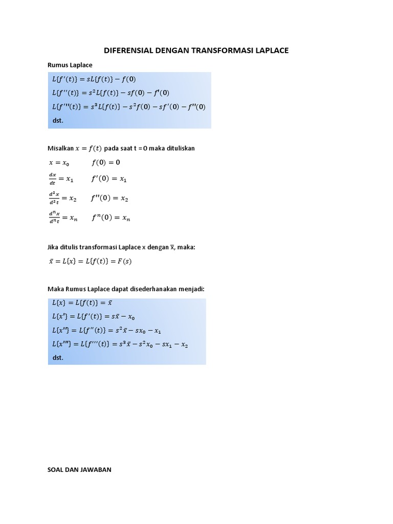 Bab Vi Transformasi Laplace Menggunakan Teorema Pergeseran Sumbu S Dan Sumbu T 5 Menentukan Turunan Pdf Document