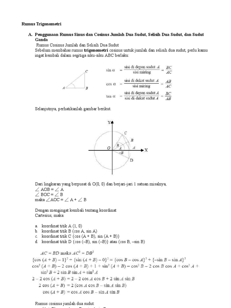 Media Belajar Online Rumus Rumus Umum Dalam Trigonometri I