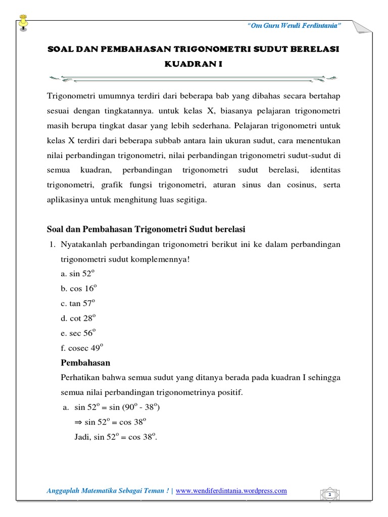 Cara Mudah Menghafal Rumus Kuadran I Ii Iii Dan Iv Trigonometri Dan Contoh Soal Serta Pembahasan Sekolah Matematika Sains Sms