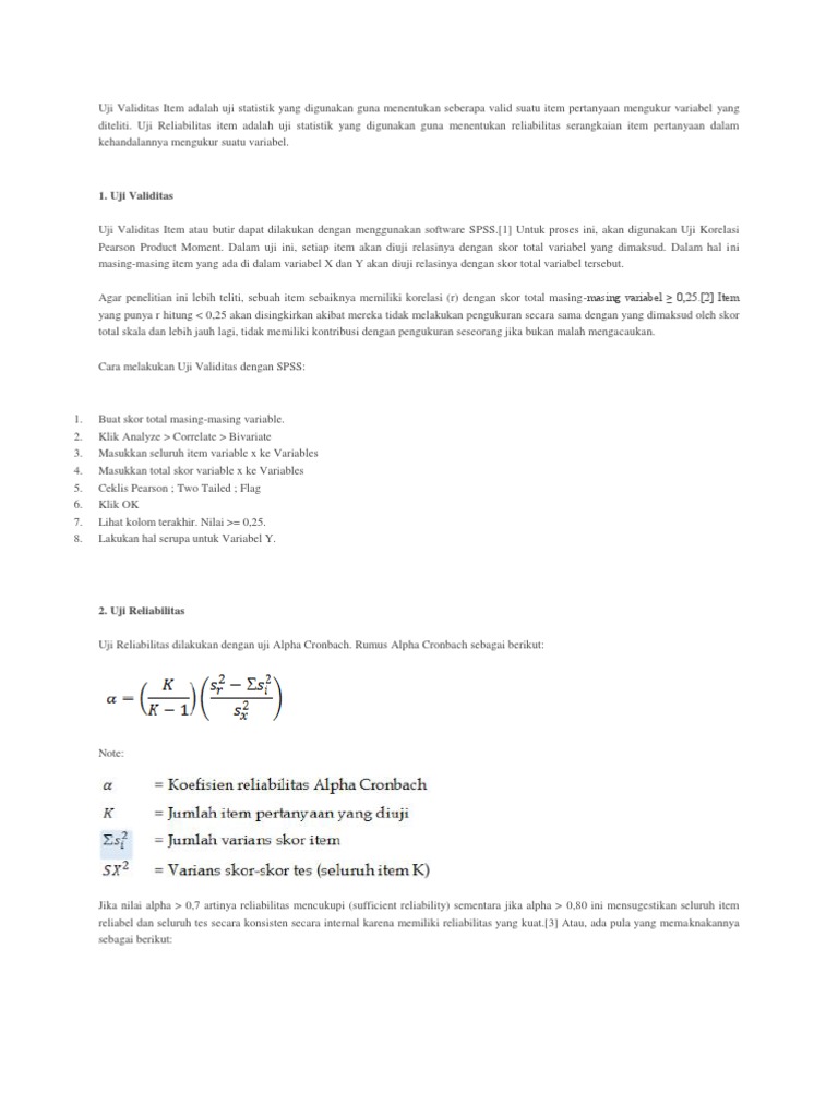 Uji Validitas Data Dengan Rumus Pearson Spss Konsistensi