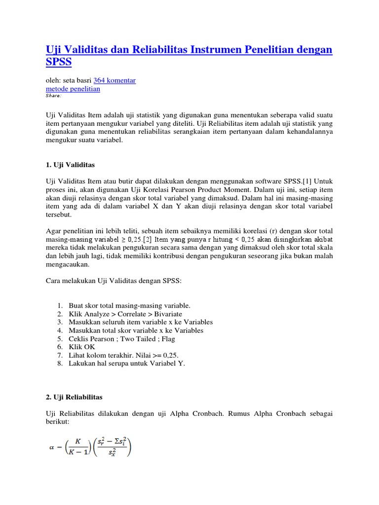 Cara Melakukan Uji Reliabilitas Alpha Cronbach S Dengan Spss Spss Indonesia