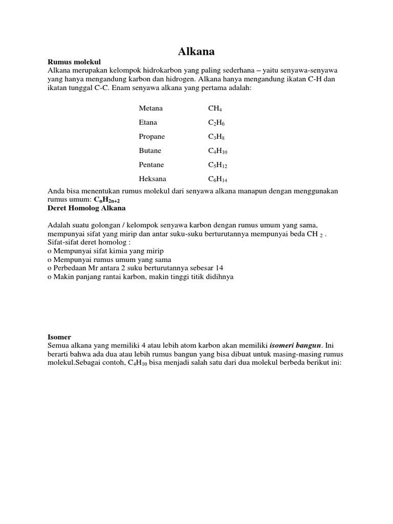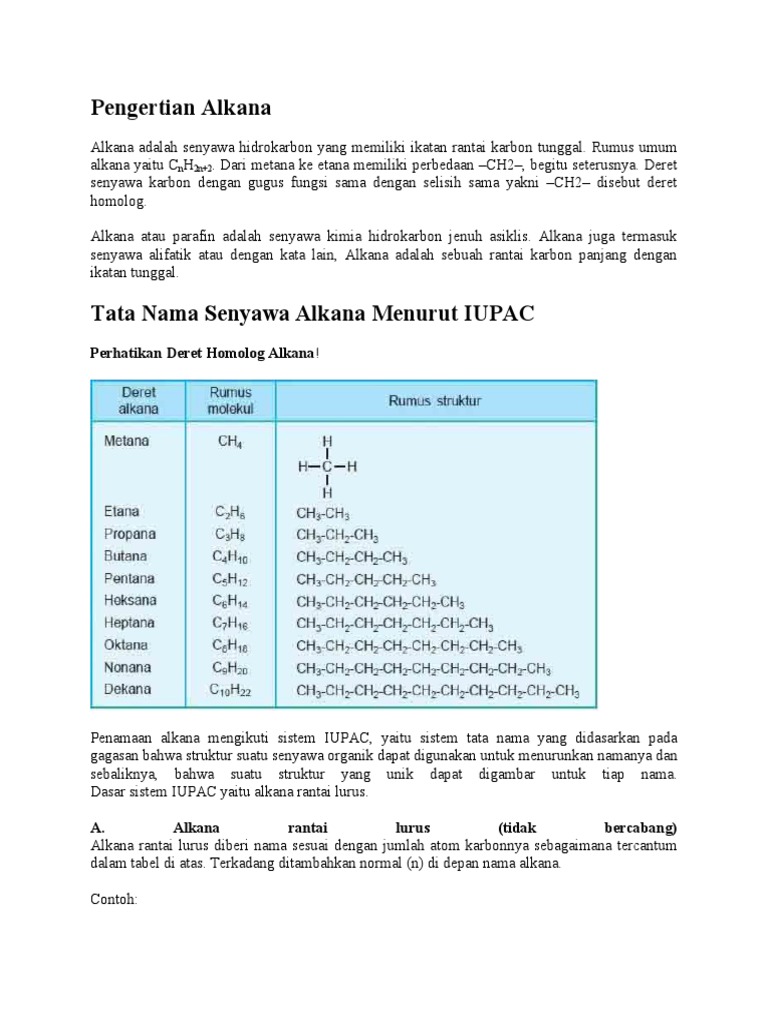 Aturan Penamaan Atau Tata Nama Dan Rumus Struktur Molekul Senyawa Turunan Alkana Seperti Metana Etana Propana Butana Pentana Heksana Heptana Oktana Nonana Dekana Materiedukasi Com