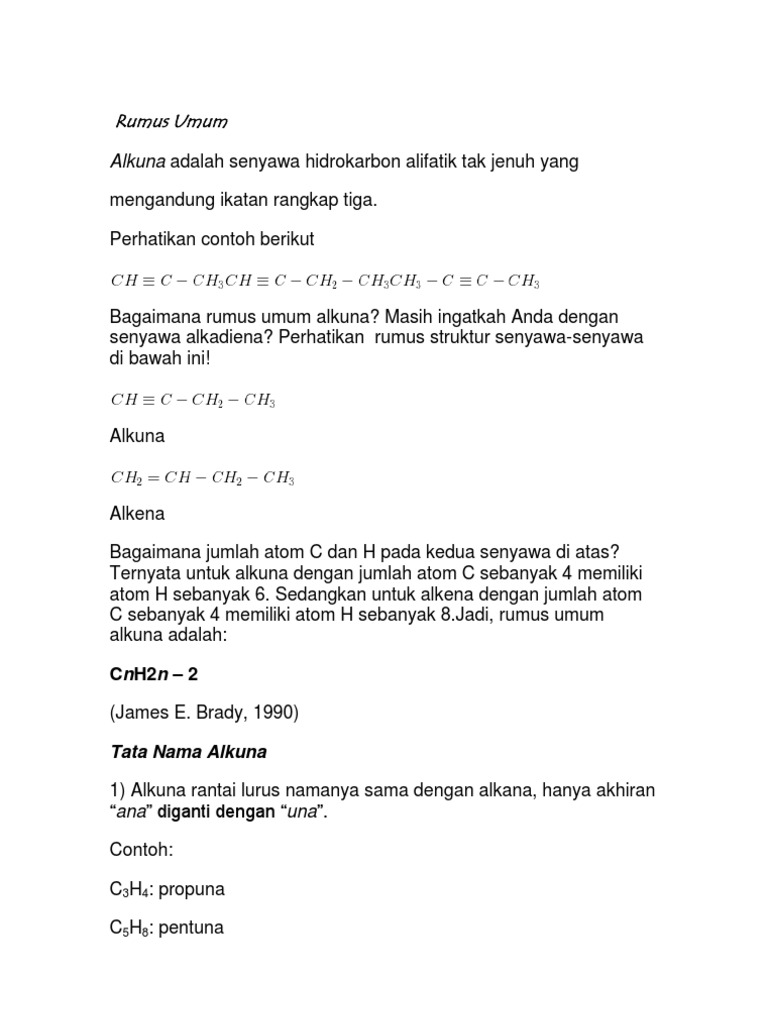 1 Tuliskan Rumus Umum Senyawa Alkuna 2 Tuliskan Rumus Kimia Dan Nama Senyawa Alkuna Dengan N 5 Brainly Co Id