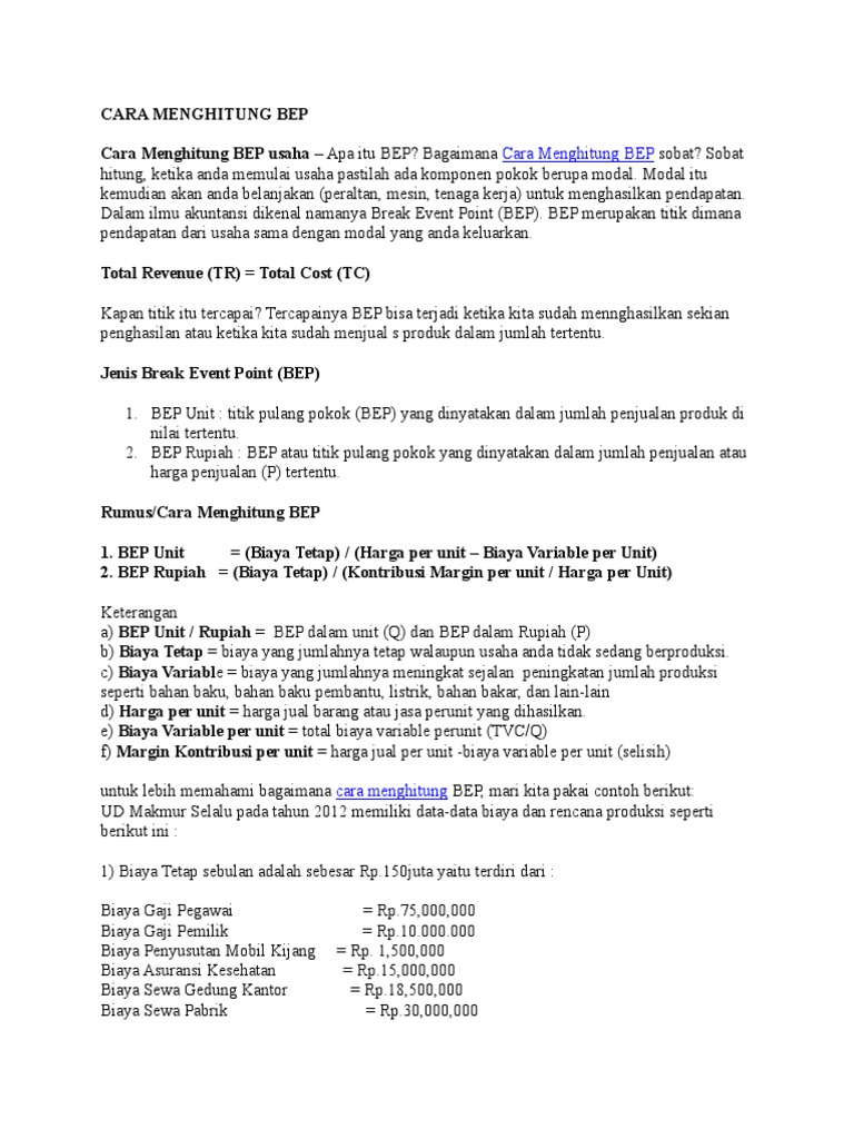 Pengertian Dan Rumus Break Even Point Bep Beserta Cara Menghitungnya Belajar Ekonomi