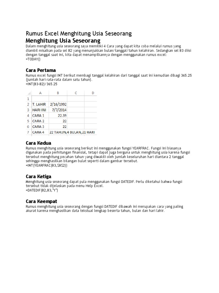 Cara Menghitung Umur Usia Dengan Ms Excel Cara Aimyaya Cara Semua Cara