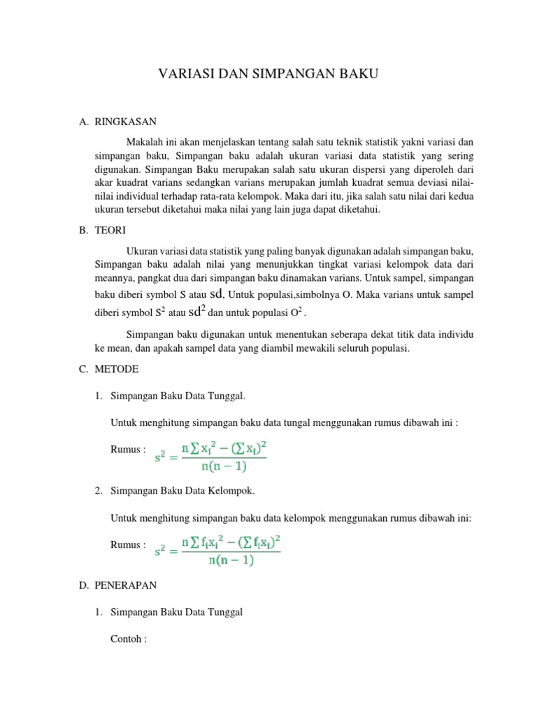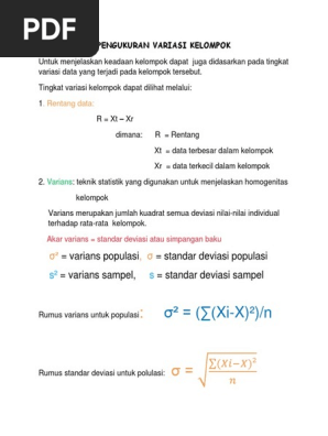 Rumus Simpangan Baku Simpangan Rata Rata Ragam Variansi Koefisen Keragaman Contoh Soal Data Tunggal Kelompok Jawaban Statistik Matematika