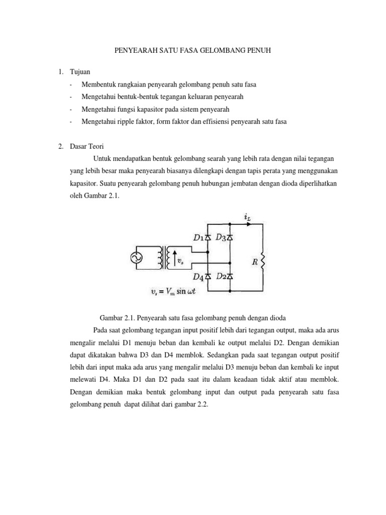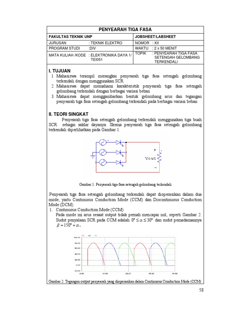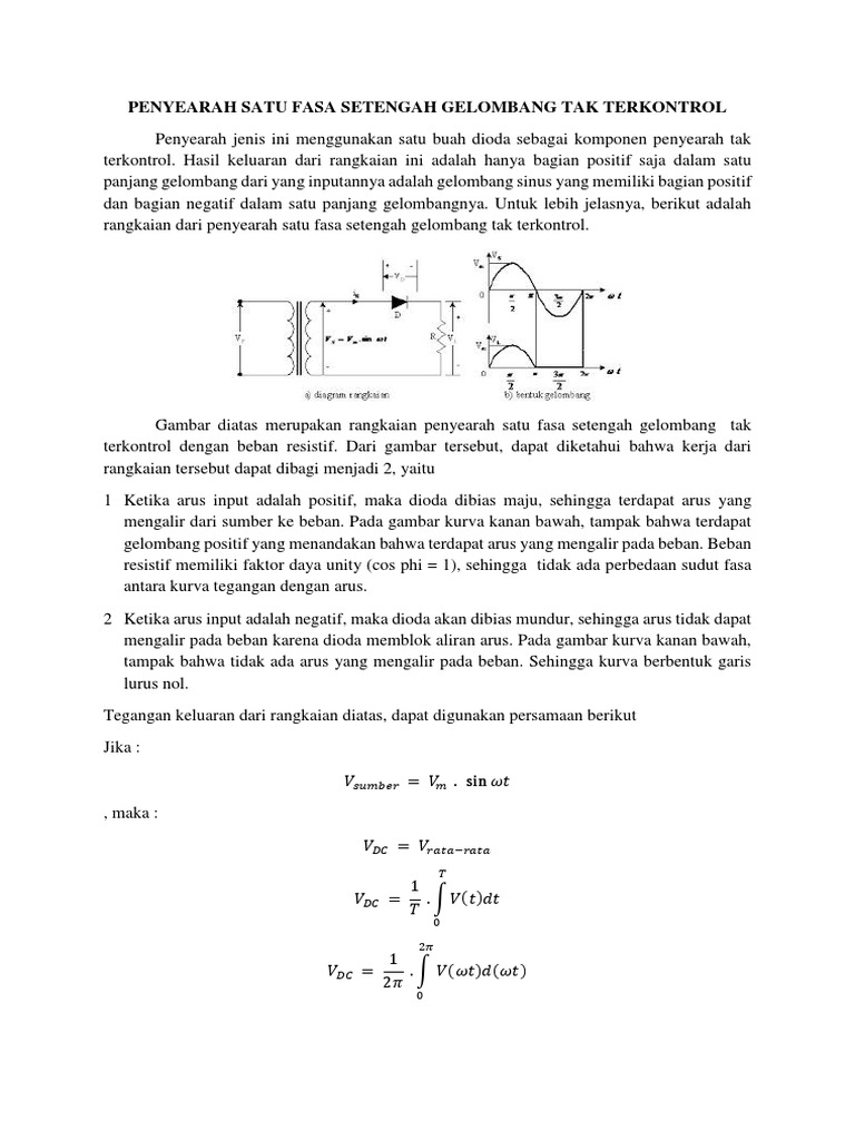 Judul Materi Kuliah Viewelektronika Daya Penulis Aswardimt Yahoo Com Penyearah 3 Fasa Gelombang Penuh Tidak Terkendali A Objektif Setelah Pelajaran Ini Diharapkan Mahasiswa Mampu Doc Document
