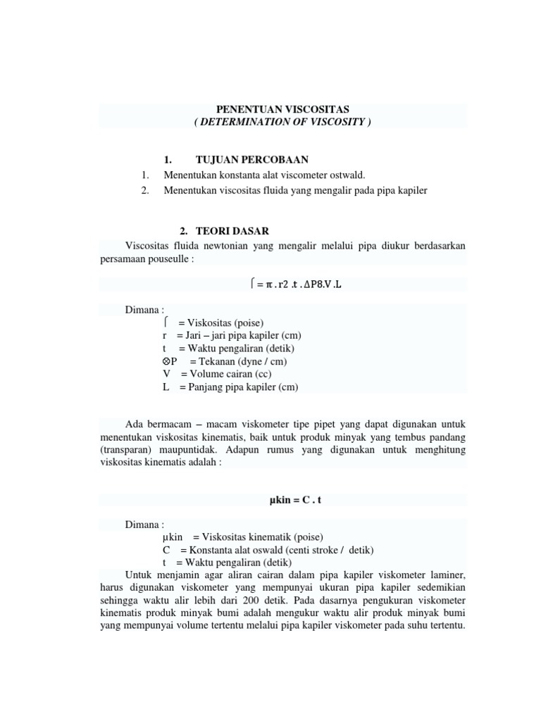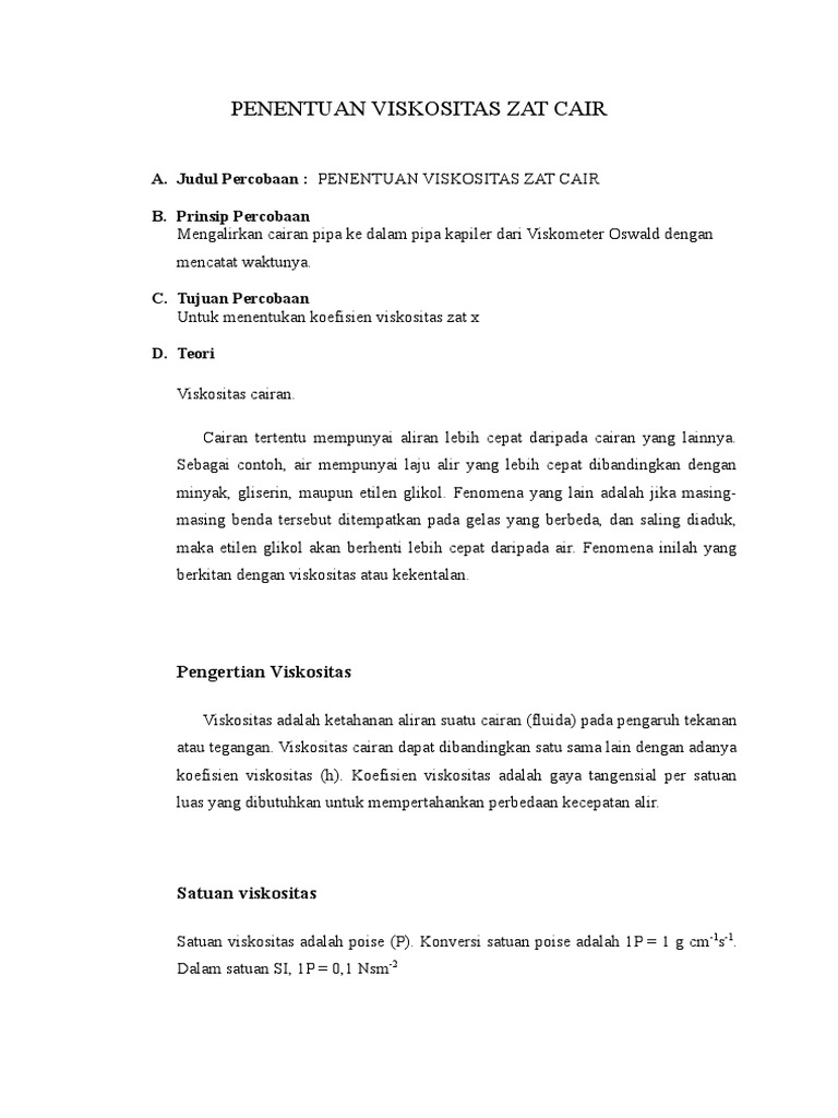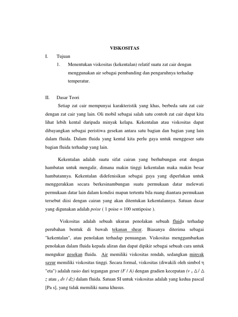 Viskositas Dan Tegangan Muka Docx Viskositas Dan Tegangan Muka Bab I Pendahuluan 1 1 Latar Belakang Dalam Setiap Fluida Baik Gas Maupun Cairan Course Hero