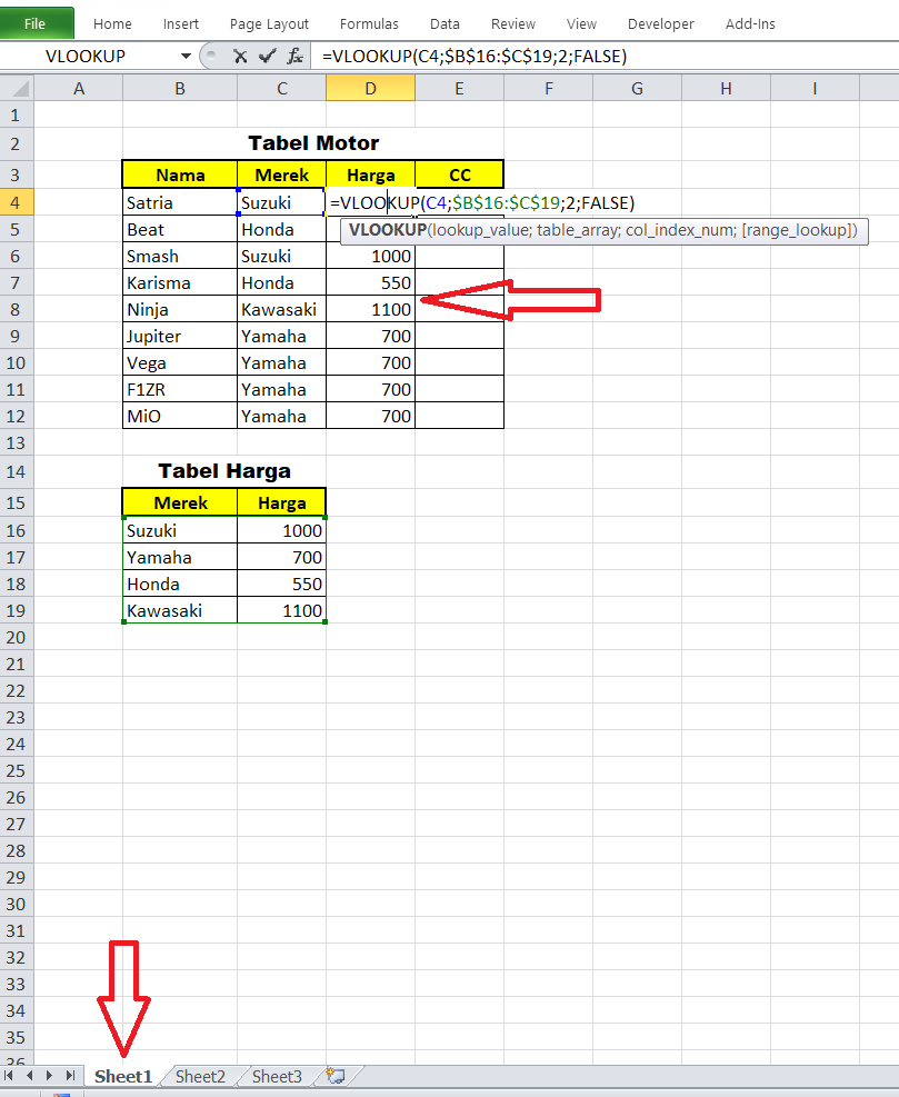 Rumus Formula Lookup Untuk Menampilkan Data Dari Sheet Yang Berbeda Berdasarkan Kriteria Di Microsoft Excel Modul Komputer