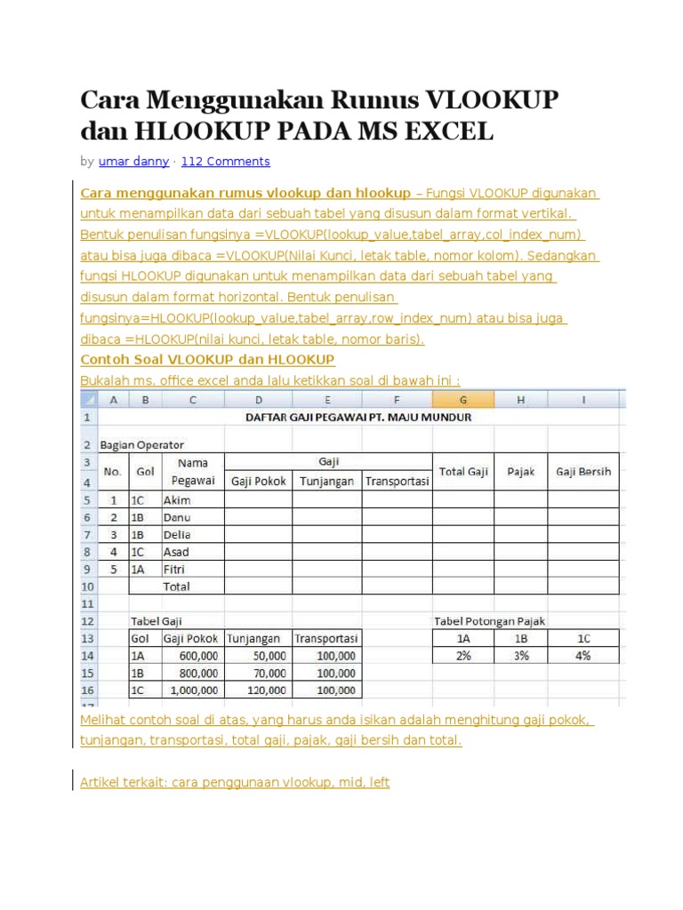 Rumus Dan Fungsi Formula Excel Vlookup Serta Hlookup